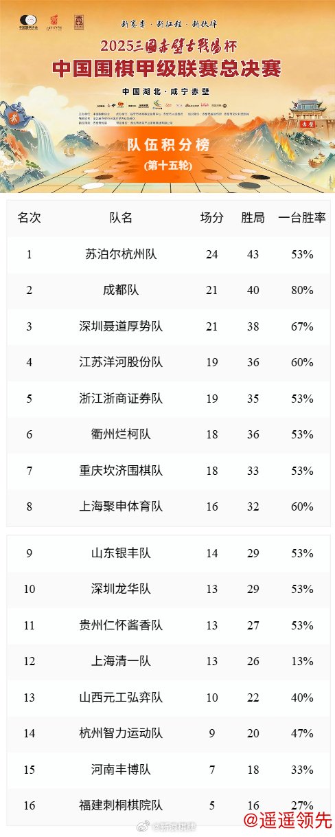 2025三国赤壁古战场杯中国围棋甲级联赛第十五轮赛果