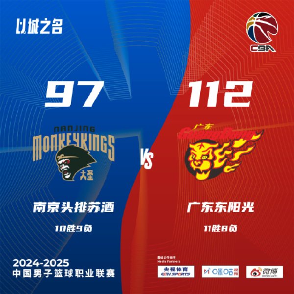 北京时间12月18日消息,2024-2025赛季CBA常规赛第19轮,同曦男篮97-112不敌广东男篮。